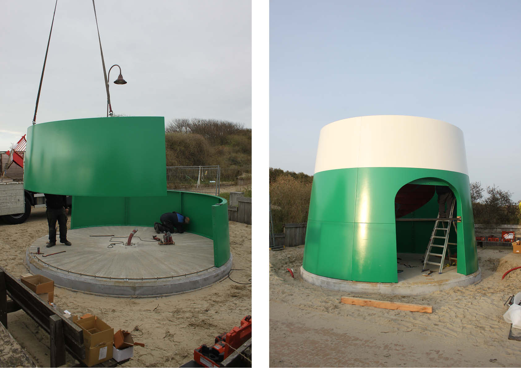 Dans le cadre du projet « Horizon 2025 », avec lequel la province de Flandre occidentale et Westtoer développent un réseau de points d’observation du paysage, un phare et une tour d’observation ont été construits dans les dunes du Coq. Un exemple typique d’une « installation-situation », propre à l’œuvre de l’artiste Guillaume Bijl.