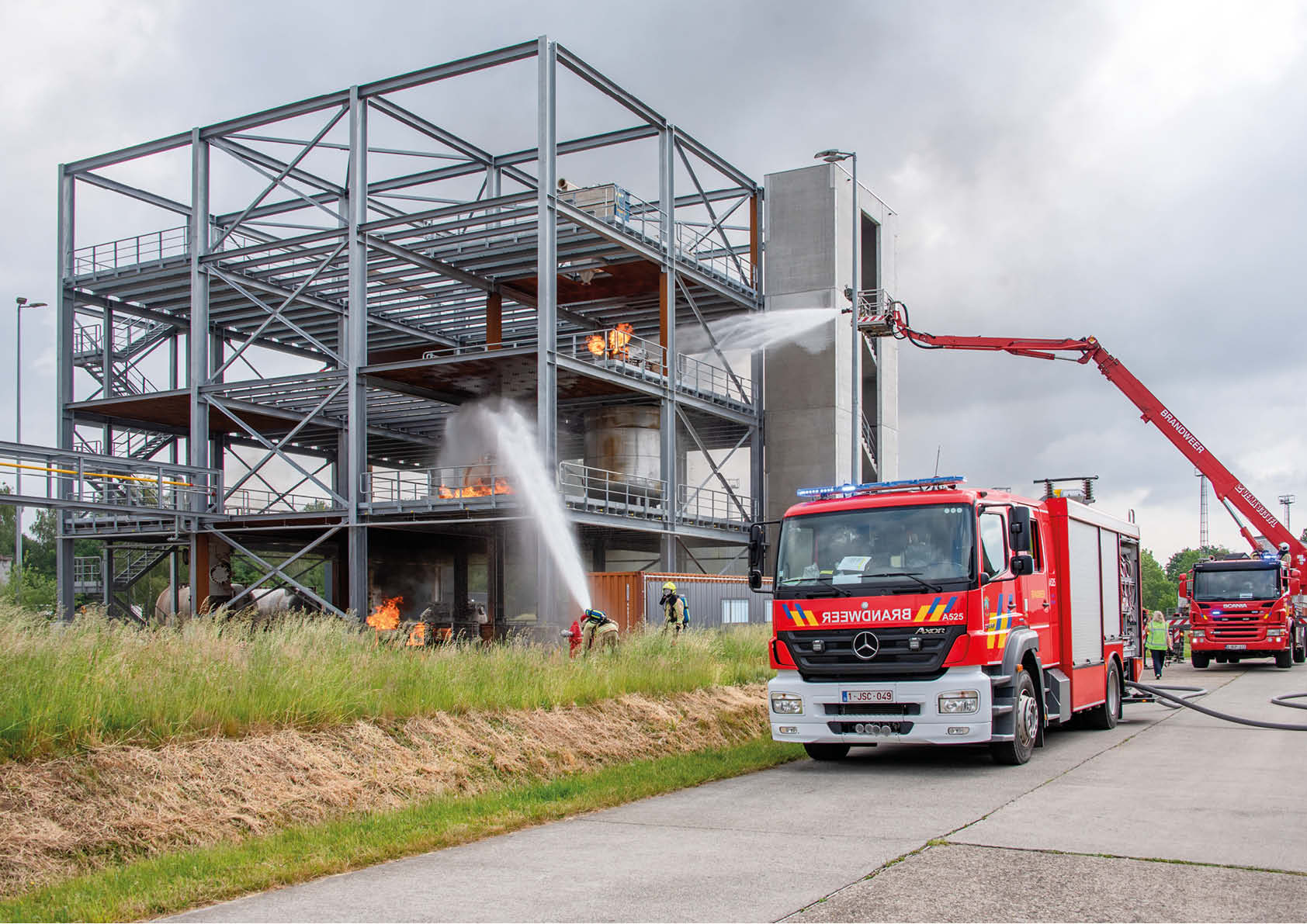 Recent investeerde de provincie Antwerpen op de Campus Vesta in Ranst in een gloednieuwe oefeninstallatie voor zware industriële brandbestrijding.Het paradepaardje van het industriële oefencomplex is het procesgebouw, een flexibele driedimensionale kubus van staal van 18 meter hoog en een stramienmaat van 7,2 meter waar op diverse plaatsen en verdiepingen een brandhaard kan worden gesimuleerd en waarvoor dus verschillende oefenscenario’s kunnen worden uitgewerkt.
